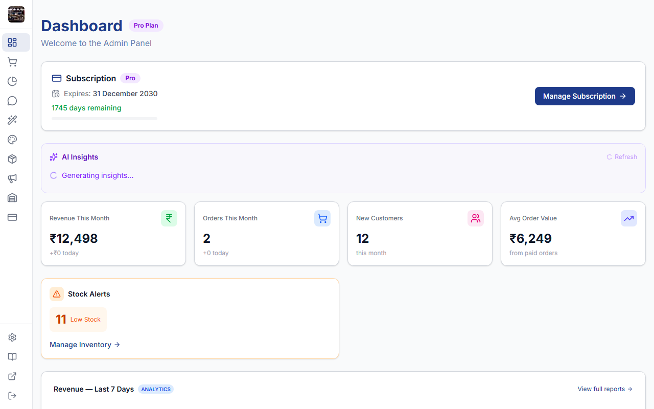 Track orders, manage inventory, and understand your customers — all from one simple dashboard.